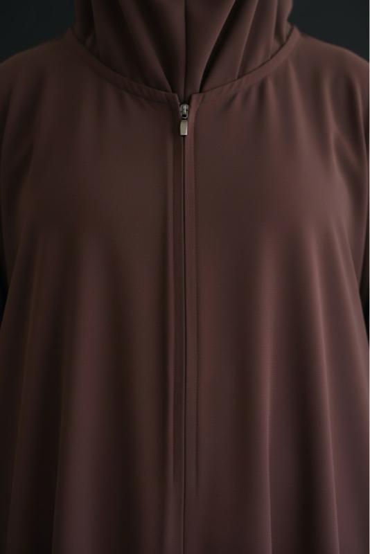 Thoughtfully designed for modern practicality, it features a full length hidden zipper for open or closed wear, hidden buttons inside sleeves for ease of wudhu and full coverage during prayer and daily wear, a unique neck collar at the back allowing modesty while praying, and a unique batwing umbrella cut.